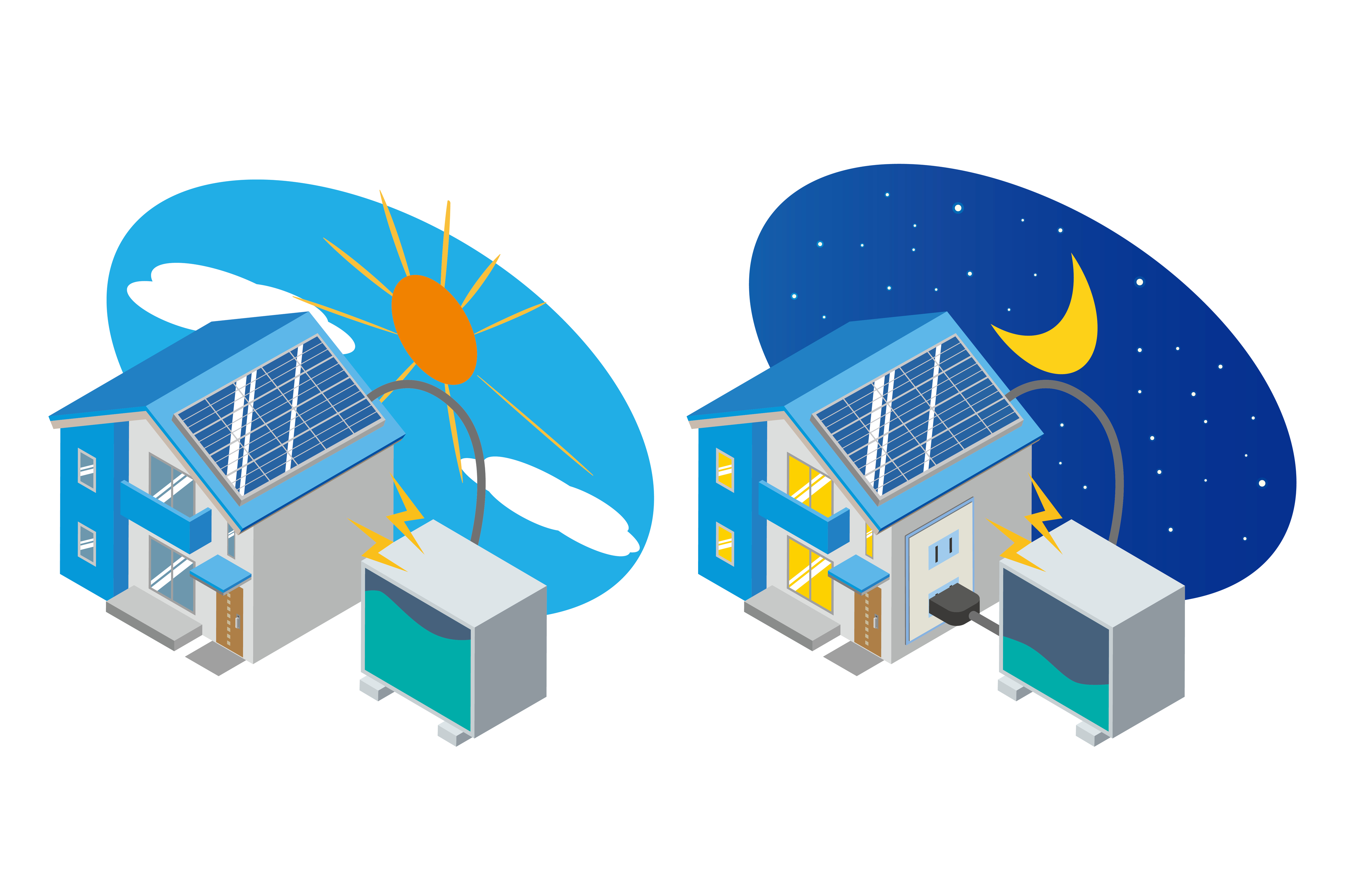 地震や台風などの自然災害による停電時、太陽光発電だけの家庭では夜間や悪天候時に電気を使えません。対して、太陽光発電と蓄電池をセット導入している家庭では、貯めておいた電気を24時間いつでも使用できます。
